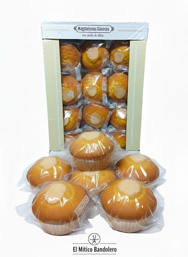 Revive los desayunos de antaño con las Magdalenas Caseras de El Mítico Bandolero. Elaboradas siguiendo una receta artesanal que prioriza la sencillez y el sabor auténtico, estas magdalenas destacan por su textura increíblemente esponjosa y su característico copete de azúcar tostado.